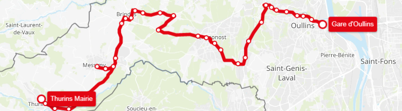 Le Bus 11 est une des lignes du réseau Transports en Commun Lyonnais (TCL) reliant les 2 communes Thurins et Oullins. La station de départ Thurins Mairie se situe à l'adresse 9 RUE DU 19 MARS 1962 Thurins et la station d'arrivée Gare d'Oullins est localisée à l'adresse AVENUE DU RHONE Oullins. Les arrêts desservis par le Bus 11 sont au nombre de 34 situés dans les 6 communes : Oullins, Sainte-Foy-lès-Lyon, Thurins, Brindas, Messimy, et Chaponost.