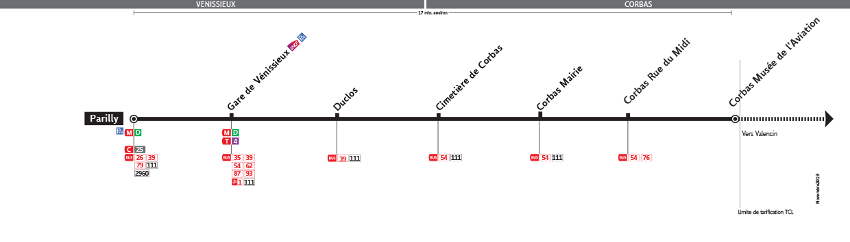 Le Bus 112 est une des lignes du réseau Transports en Commun Lyonnais (TCL) reliant les 2 communes Corbas et Vénissieux. La station de départ Parc de Loisirs se situe à l'adresse ROUTE DE MARENNES Corbas et la station d'arrivée Parilly est localisée à l'adresse 4 PLACE JULES GRANDCLEMENT Vénissieux. Les arrêts desservis par le Bus 112 sont au nombre de 7 situés dans les 2 communes : Corbas et Vénissieux.