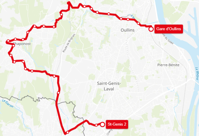 Le Bus 12 est une des lignes du réseau Transports en Commun Lyonnais (TCL) reliant les 2 communes Saint-Genis-Laval et Oullins. La station de départ St-Genis-Laval Hôp. Sud se situe à l'adresse RUE FRANCISQUE DARCIEUX Saint-Genis-Laval et la station d'arrivée Gare d'Oullins est localisée à l'adresse AVENUE DU RHONE Oullins. Les arrêts desservis par le Bus 12 sont au nombre de 40 situés dans les 6 communes : Saint-Genis-Laval, Oullins, Sainte-Foy-lès-Lyon, Pierre-Bénite, Chaponost, et Brignais.