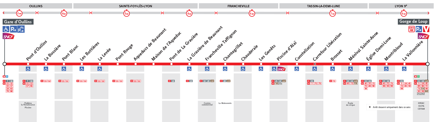Le Bus 14 est une des lignes du réseau Transports en Commun Lyonnais (TCL) reliant les 2 communes Lyon 9e Arrondissement et Oullins. La station de départ Gorge de Loup se situe à l'adresse 56 RUE SERGENT MICHEL BERTHET Lyon 9e Arrondissement et la station d'arrivée Gare d'Oullins est localisée à l'adresse AVENUE DU RHONE Oullins. Les arrêts desservis par le Bus 14 sont au nombre de 23 situés dans les 5 communes : Francheville, Lyon 9e Arrondissement, Tassin-la-Demi-Lune, Sainte-Foy-lès-Lyon, et Oullins.
