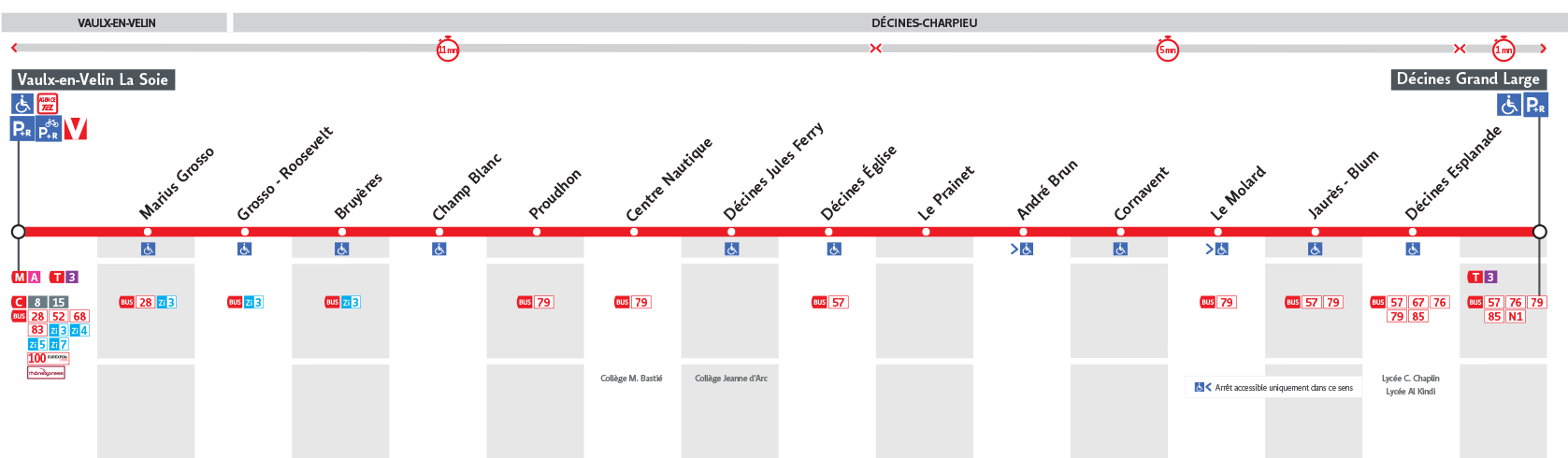 Le Bus 16 est une des lignes du réseau Transports en Commun Lyonnais (TCL) reliant les 2 communes Décines-Charpieu et Vaulx-en-Velin. La station de départ Décines Grand Large se situe à l'adresse 24 RUE FRANCISCO FERRER Décines-Charpieu et la station d'arrivée Vaulx-en-Velin La Soie est localisée à l'adresse AVENUE DES CANUTS Vaulx-en-Velin. Les arrêts desservis par le Bus 16 sont au nombre de 16 situés dans les 2 communes : Vaulx-en-Velin et Décines-Charpieu.