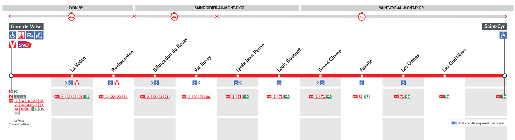 Le Bus 20 est une des lignes du réseau Transports en Commun Lyonnais (TCL) reliant les 2 communes Saint-Cyr-au-Mont-d'Or et Lyon 9e Arrondissement. La station de départ St Cyr se situe à l'adresse 78 ROUTE DE LYON Saint-Cyr-au-Mont-d'Or et la station d'arrivée Gare de Vaise est localisée à l'adresse 12 RUE DU 24 MARS 1852 Lyon 9e Arrondissement. Les arrêts desservis par le Bus 20 sont au nombre de 24 situés dans les 3 communes : Saint-Cyr-au-Mont-d'Or, Saint-Didier-au-Mont-d'Or, et Lyon 9e Arrondissement.