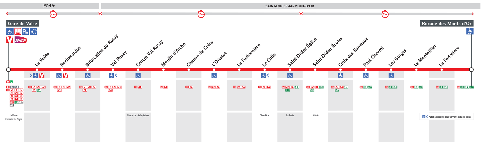 Le Bus 23 est une des lignes du réseau Transports en Commun Lyonnais (TCL) reliant les 2 communes Saint-Didier-au-Mont-d'Or et Lyon 9e Arrondissement. La station de départ Rocade des Monts d'Or se situe à l'adresse 110 ROCADE DES MONTS D OR Saint-Didier-au-Mont-d'Or et la station d'arrivée Gare de Vaise est localisée à l'adresse 12 RUE DU 24 MARS 1852 Lyon 9e Arrondissement. Les arrêts desservis par le Bus 23 sont au nombre de 19 situés dans les 2 communes : Saint-Didier-au-Mont-d'Or et Lyon 9e Arrondissement.