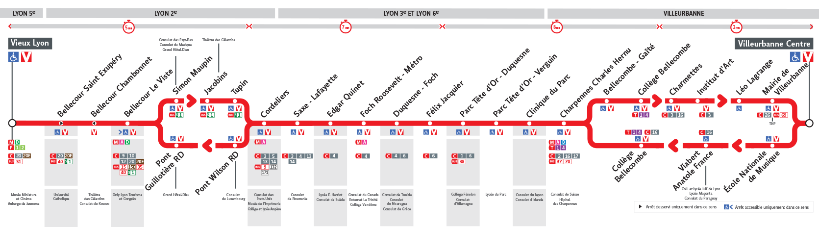 Le Bus 27 est une des lignes du réseau Transports en Commun Lyonnais (TCL) reliant les 2 communes Villeurbanne et Lyon 5e Arrondissement. La station de départ Villeurbanne Centre se situe à l'adresse 83 RUE ANATOLE FRANCE Villeurbanne et la station d'arrivée Vieux Lyon est localisée à l'adresse 6 AVENUE ADOLPHE MAX Lyon 5e Arrondissement. Les arrêts desservis par le Bus 27 sont au nombre de 22 situés dans les 5 communes : Lyon 5e Arrondissement, Lyon 2e Arrondissement, Lyon 6e Arrondissement, Villeurbanne, et Lyon 3e Arrondissement.