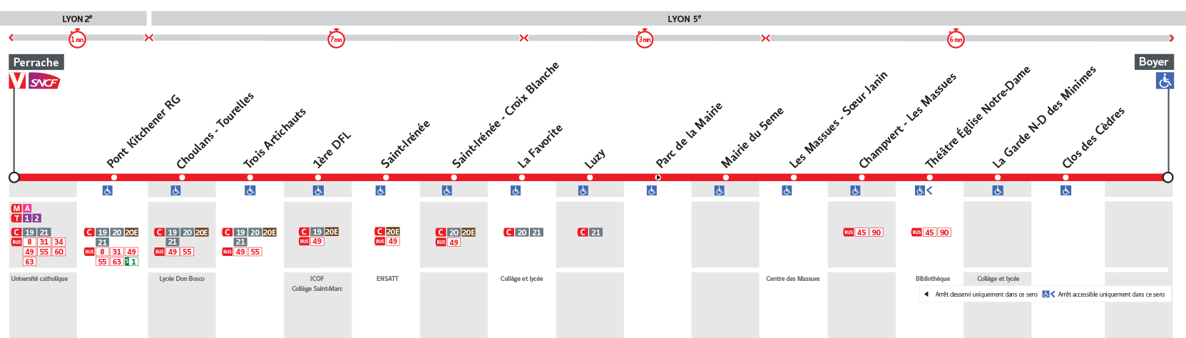 Le Bus 46 est une des lignes du réseau Transports en Commun Lyonnais (TCL) reliant les 2 communes Tassin-la-Demi-Lune et Lyon 2e Arrondissement. La station de départ Boyer se situe à l'adresse 16 RUE DE BOYER Tassin-la-Demi-Lune et la station d'arrivée Perrache est localisée à l'adresse PLACE CARNOT Lyon 2e Arrondissement. Les arrêts desservis par le Bus 46 sont au nombre de 17 situés dans les 3 communes : Lyon 5e Arrondissement, Tassin-la-Demi-Lune, et Lyon 2e Arrondissement.