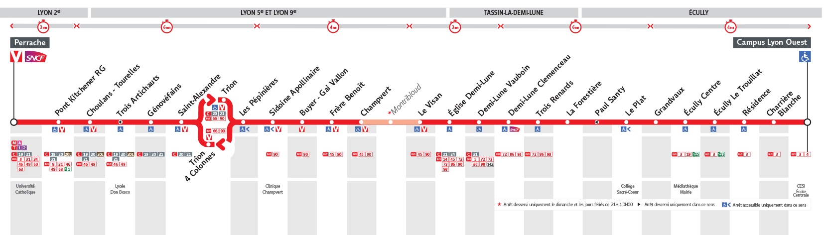 Le Bus 55 est une des lignes du réseau Transports en Commun Lyonnais (TCL) reliant les 2 communes Écully et Lyon 2e Arrondissement. La station de départ Campus Lyon Ouest se situe à l'adresse 36 AVENUE GUY DE COLLONGUE Écully et la station d'arrivée Perrache est localisée à l'adresse PLACE CARNOT Lyon 2e Arrondissement. Les arrêts desservis par le Bus 55 sont au nombre de 26 situés dans les 5 communes : Lyon 9e Arrondissement, Tassin-la-Demi-Lune, Lyon 5e Arrondissement, Écully, et Lyon 2e Arrondissement.