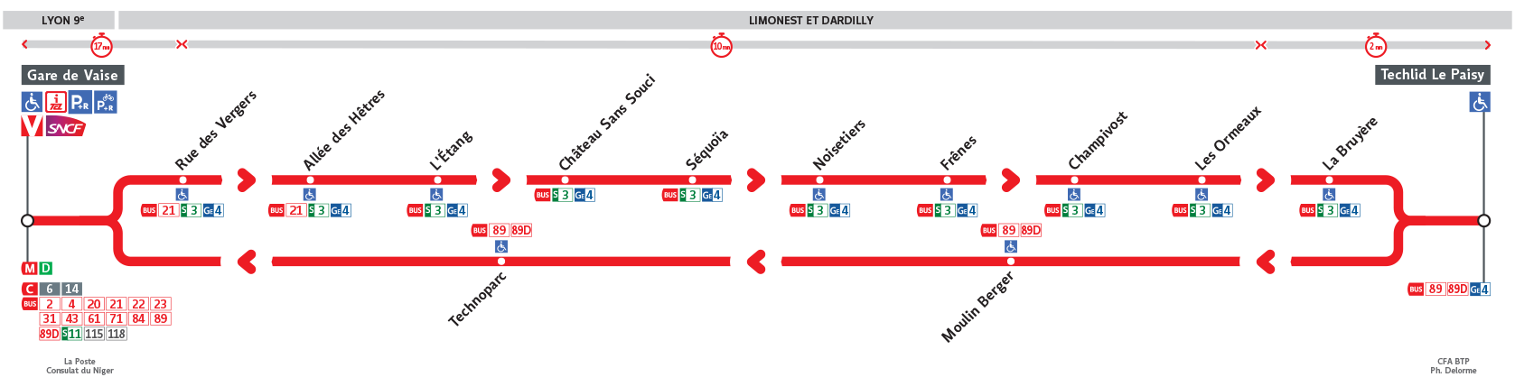 Le Bus 6 est une des lignes du réseau Transports en Commun Lyonnais (TCL) reliant les 2 communes Oullins et Sainte-Foy-lès-Lyon. La station de départ Gare d'Oullins se situe à l'adresse AVENUE DU RHONE Oullins et la station d'arrivée Ste-Foy Place Saint Luc est localisée à l'adresse 51 BOULEVARD DES PROVINCES Sainte-Foy-lès-Lyon. Les arrêts desservis par le Bus 6 sont au nombre de 24 situés dans les 3 communes : Sainte-Foy-lès-Lyon, Oullins, et La Mulatière.