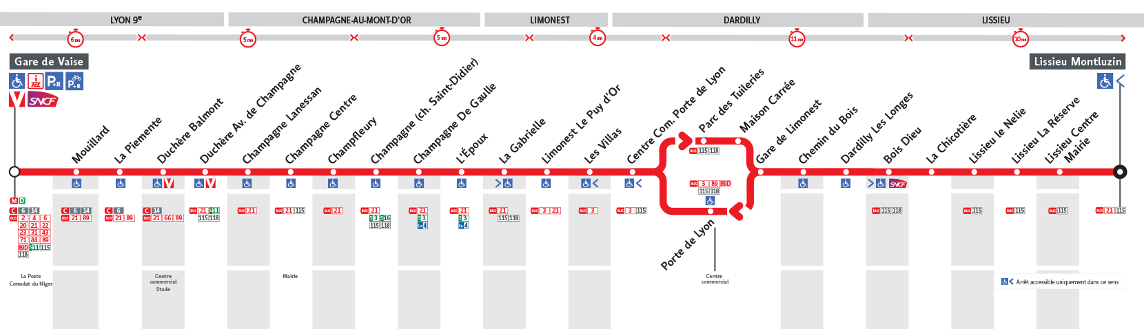 Le Bus 61 est une des lignes du réseau Transports en Commun Lyonnais (TCL) reliant les 2 communes Lissieu et Lyon 9e Arrondissement. La station de départ Lissieu - Montluzin se situe à l'adresse ROUTE DE CHASSELAY Lissieu et la station d'arrivée Gare de Vaise est localisée à l'adresse 12 RUE DU 24 MARS 1852 Lyon 9e Arrondissement. Les arrêts desservis par le Bus 61 sont au nombre de 26 situés dans les 5 communes : Champagne-au-Mont-d'Or, Lyon 9e Arrondissement, Limonest, Dardilly, et Lissieu.
