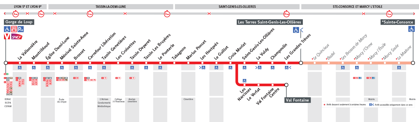 Le Bus 72 est une des lignes du réseau Transports en Commun Lyonnais (TCL) reliant les 2 communes Sainte-Consorce et Lyon 9e Arrondissement. La station de départ Ste Consorce se situe à l'adresse RUE DU 30 AOUT 1944 Sainte-Consorce et la station d'arrivée Gorge de Loup est localisée à l'adresse 1 RUE PROFESSEUR GUERIN Lyon 9e Arrondissement. Les arrêts desservis par le Bus 72 sont au nombre de 36 situés dans les 5 communes : Lyon 9e Arrondissement, Tassin-la-Demi-Lune, Saint-Genis-les-Ollières, Sainte-Consorce, et Marcy-l'Étoile.