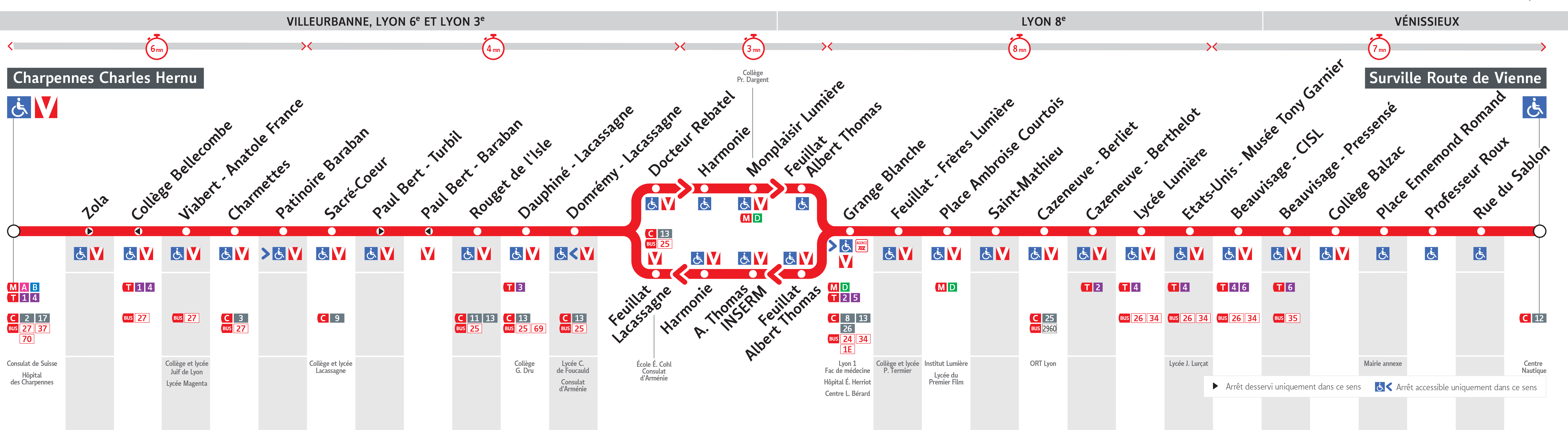 Le Bus C16 est une des lignes du réseau Transports en Commun Lyonnais (TCL) reliant les 2 communes Vénissieux et Lyon 6e Arrondissement. La station de départ Surville Route de Vienne se situe à l'adresse 365 ROUTE DE VIENNE Vénissieux et la station d'arrivée Charpennes est localisée à l'adresse 10 RUE DES EMERAUDES Lyon 6e Arrondissement. Les arrêts desservis par le Bus C16 sont au nombre de 29 situés dans les 5 communes : Lyon 3e Arrondissement, Lyon 8e Arrondissement, Lyon 6e Arrondissement, Vénissieux, et Villeurbanne.