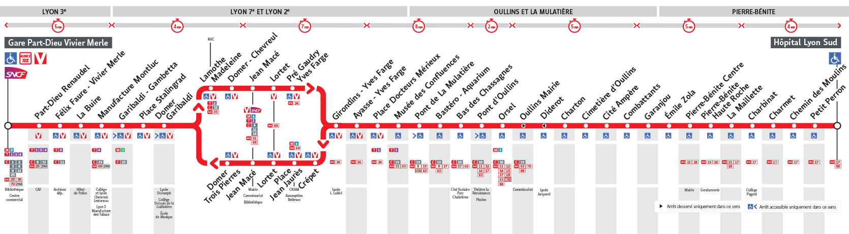 Le Bus C7 est une des lignes du réseau Transports en Commun Lyonnais (TCL) reliant les 2 communes Saint-Genis-Laval et Lyon 3e Arrondissement. La station de départ St-Genis-Laval Hôp. Sud se situe à l'adresse RUE FRANCISQUE DARCIEUX Saint-Genis-Laval et la station d'arrivée Gare Part-Dieu V.Merle est localisée à l'adresse 30 BOULEVARD MARIUS VIVIER MERLE Lyon 3e Arrondissement. Les arrêts desservis par le Bus C7 sont au nombre de 38 situés dans les 7 communes : Lyon 7e Arrondissement, Oullins, La Mulatière, Pierre-Bénite, Lyon 3e Arrondissement, Lyon 2e Arrondissement, et Saint-Genis-Laval.