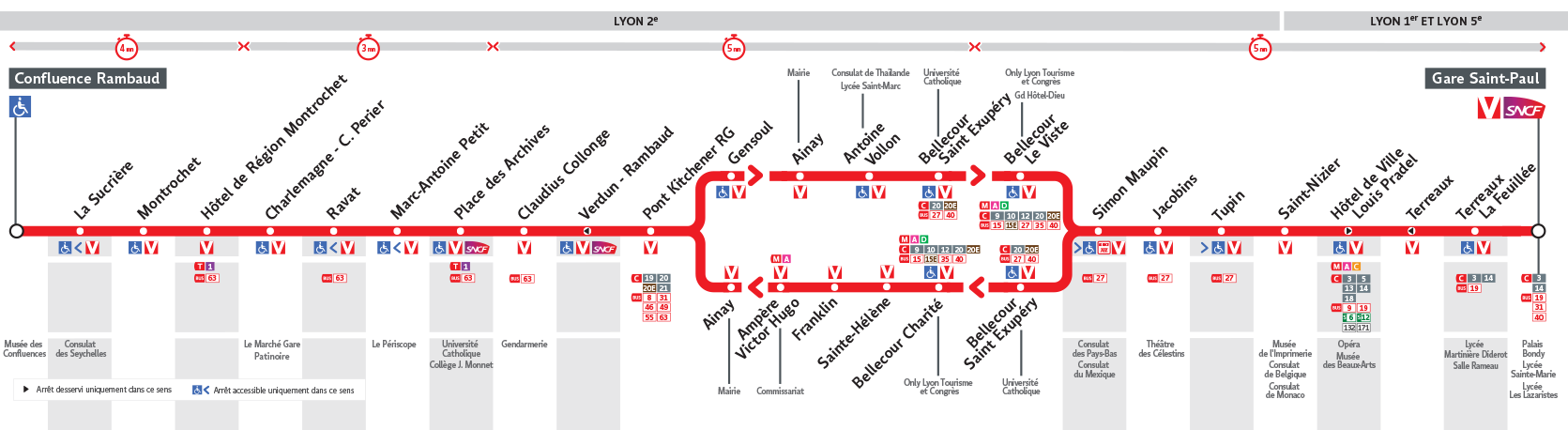Le Bus S1 est une des lignes du réseau Transports en Commun Lyonnais (TCL) reliant les 2 communes Lyon 5e Arrondissement et Lyon 2e Arrondissement. La station de départ Gare Saint-Paul se situe à l'adresse PLACE SAINT PAUL Lyon 5e Arrondissement et la station d'arrivée Confluence Rambaud est localisée à l'adresse 60 QUAI RAMBAUD Lyon 2e Arrondissement. Les arrêts desservis par le Bus S1 sont au nombre de 22 situés dans les 3 communes : Lyon 2e Arrondissement, Lyon 5e Arrondissement, et Lyon 1er Arrondissement.