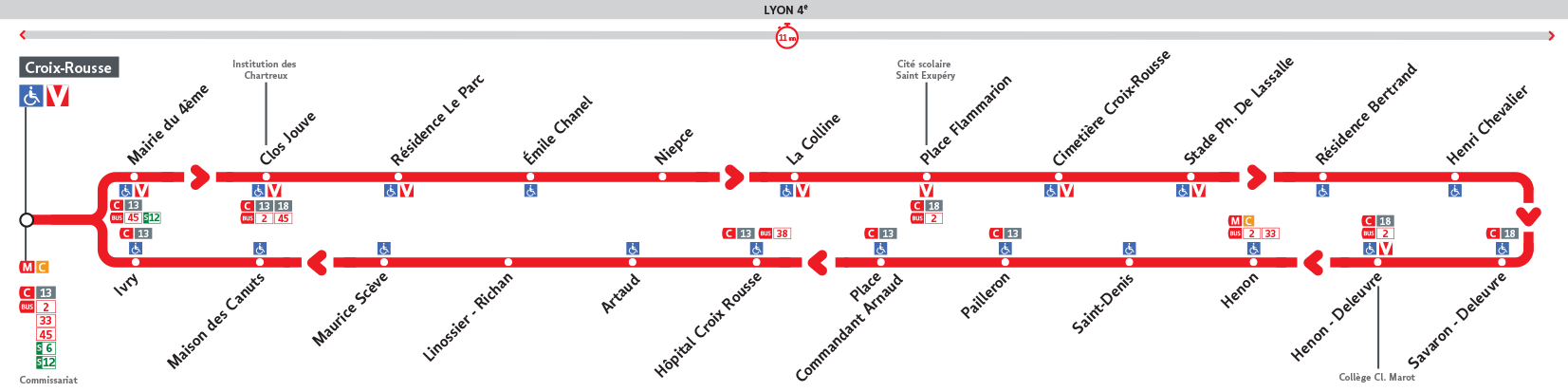 Le Bus S4 est une des lignes du réseau Transports en Commun Lyonnais (TCL) assurant la desserte locale au sein de la commune Lyon 4e Arrondissement entre la station Hénon - Deleuvre située 51 RUE DELEUVRE et la station Croix-Rousse située à l'adresse 27 PLACE DE LA CROIX ROUSSE. Les arrêts desservis par le Bus S4 sont au nombre de 14. L'ensemble des arrêts se trouve dans la commune de Lyon 4e Arrondissement.