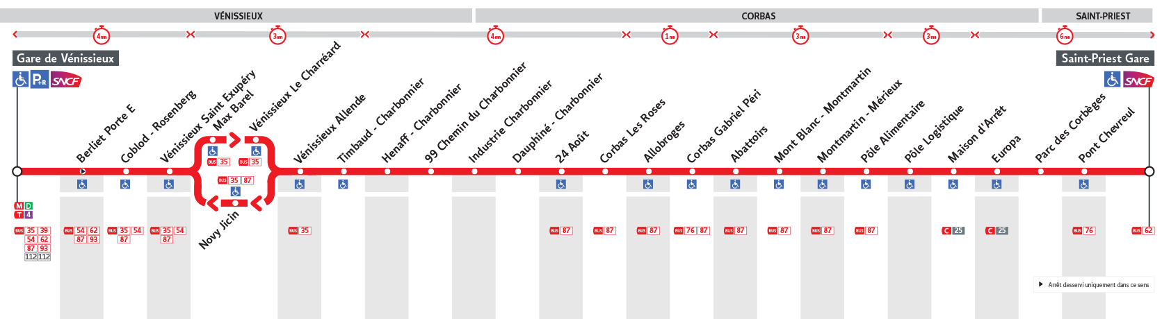 Le Bus ZI1 est une des lignes du réseau Transports en Commun Lyonnais (TCL) reliant les 2 communes Saint-Priest et Vénissieux. La station de départ St Priest Gare se situe à l'adresse 25 AVENUE DE LA GARE Saint-Priest et la station d'arrivée Gare de Vénissieux est localisée à l'adresse 2 BOULEVARD AMBROISE CROIZAT Vénissieux. Les arrêts desservis par le Bus ZI1 sont au nombre de 26 situés dans les 3 communes : Corbas, Vénissieux, et Saint-Priest.